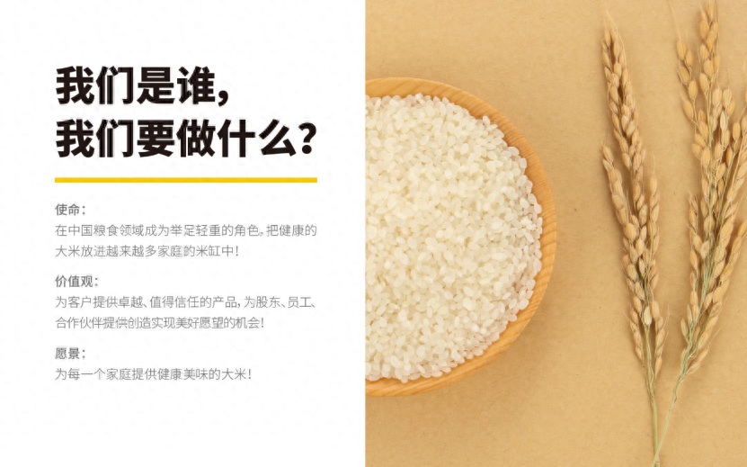 好公司往往以更大的格局看待自己的事業(yè),在偉大愿景的引領(lǐng)之下,把企業(yè)作為安全、健康、文化使命的載體,實(shí)現(xiàn)“中國大米健康信用體系締造者”的偉大夢想,重塑消費(fèi)者對湖南大米的信心。
